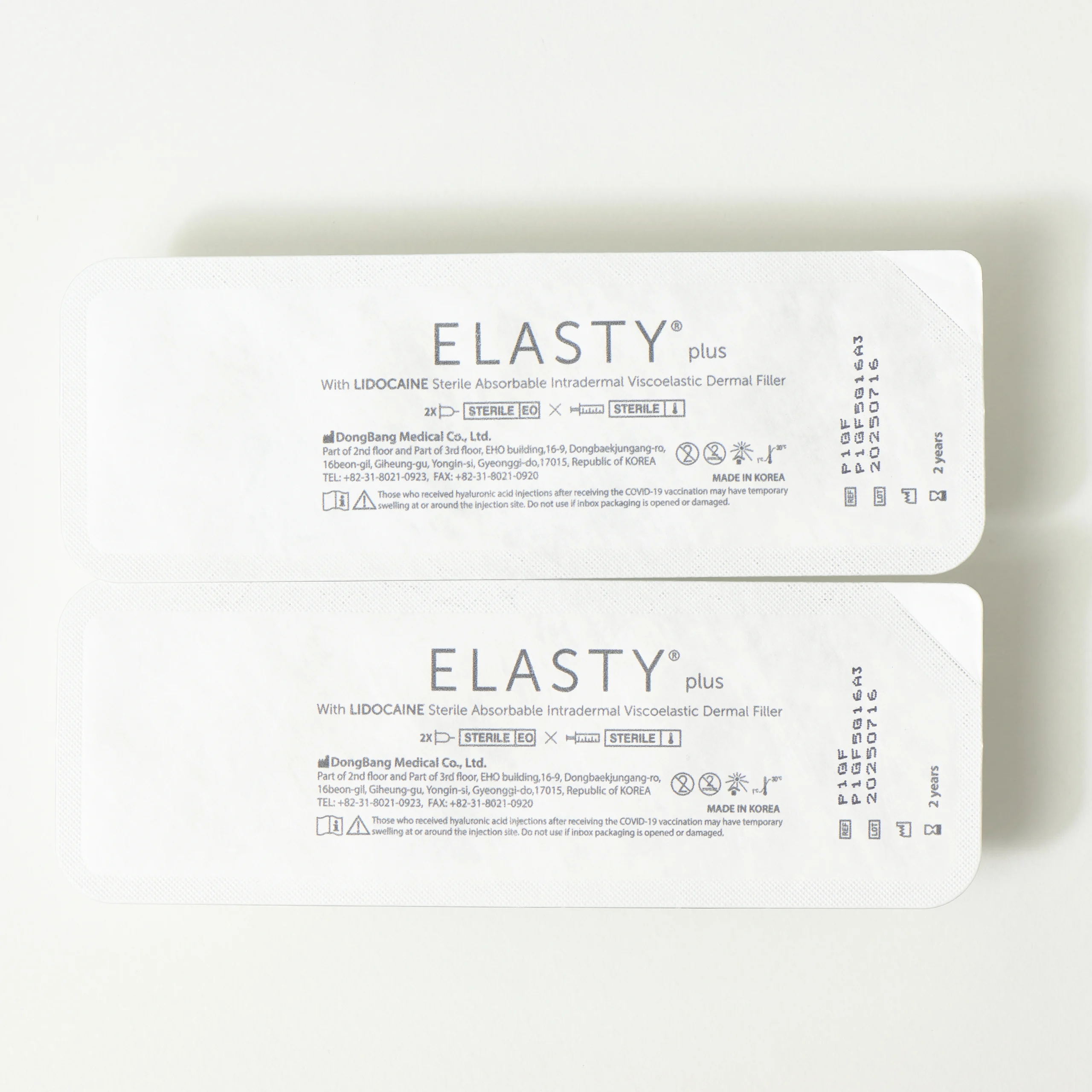 The formulation belongs to cross-linked hyaluronic acid (HA) fillers with a stated HA content of 24 mg/mL and a particle size range of 200-400 µm (evaluated with 27G ½ TW conditions). Its combination of elasticity and cohesiveness allows shaping with fewer risks of migration while aiming for long-lasting structural correction. In selected indications managed by experienced injectors, Elasty G Plus lip filler may be chosen when the goal is strong architectural support (e.g., pillars or pronounced border definition) rather than a very soft finish.
