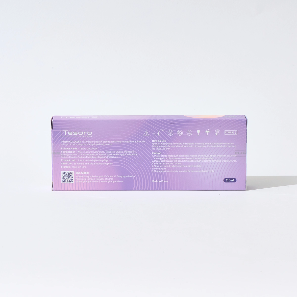 Unlike volumizers that simply occupy space, Tesoro Collagen helps the dermis rebuild its own architecture while maintaining natural expression. The purified RHLC backbone is paired with supportive components (e.g., sodium hyaluronate, amino acids, peptides, and niacinamide) to promote hydration and barrier comfort during recovery. With no animal origin and no allergy testing required, clinicians can incorporate it into delicate areas of the face, neck, and décolleté or use it alongside energy devices and HA volumizers in harmonized plans. Typical protocols involve three sessions spaced about four weeks apart; glow and firmness usually become noticeable after the second visit, with maintenance performed every 6–12 months. Storage is simple—controlled room temperature (1–30 °C)—and shelf life is 36 months from manufacture.
