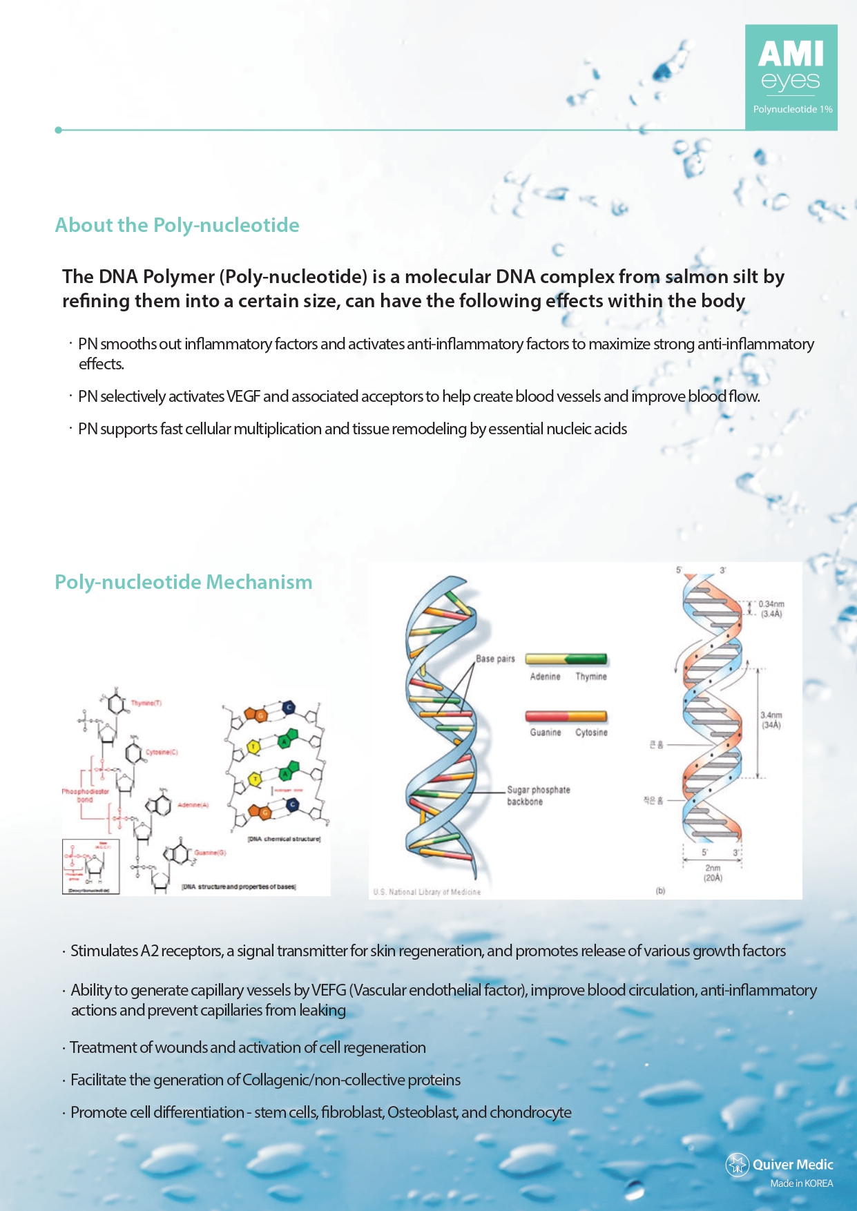 Beyond simple hydration, the mechanism behind an Ami Eyes treatment is tied to PN-mediated bio-modulation: anti-inflammatory signaling, selective VEGF pathway activation to support neovascularization and blood-flow improvement, and nucleic-acid support for cell turnover and tissue remodeling.